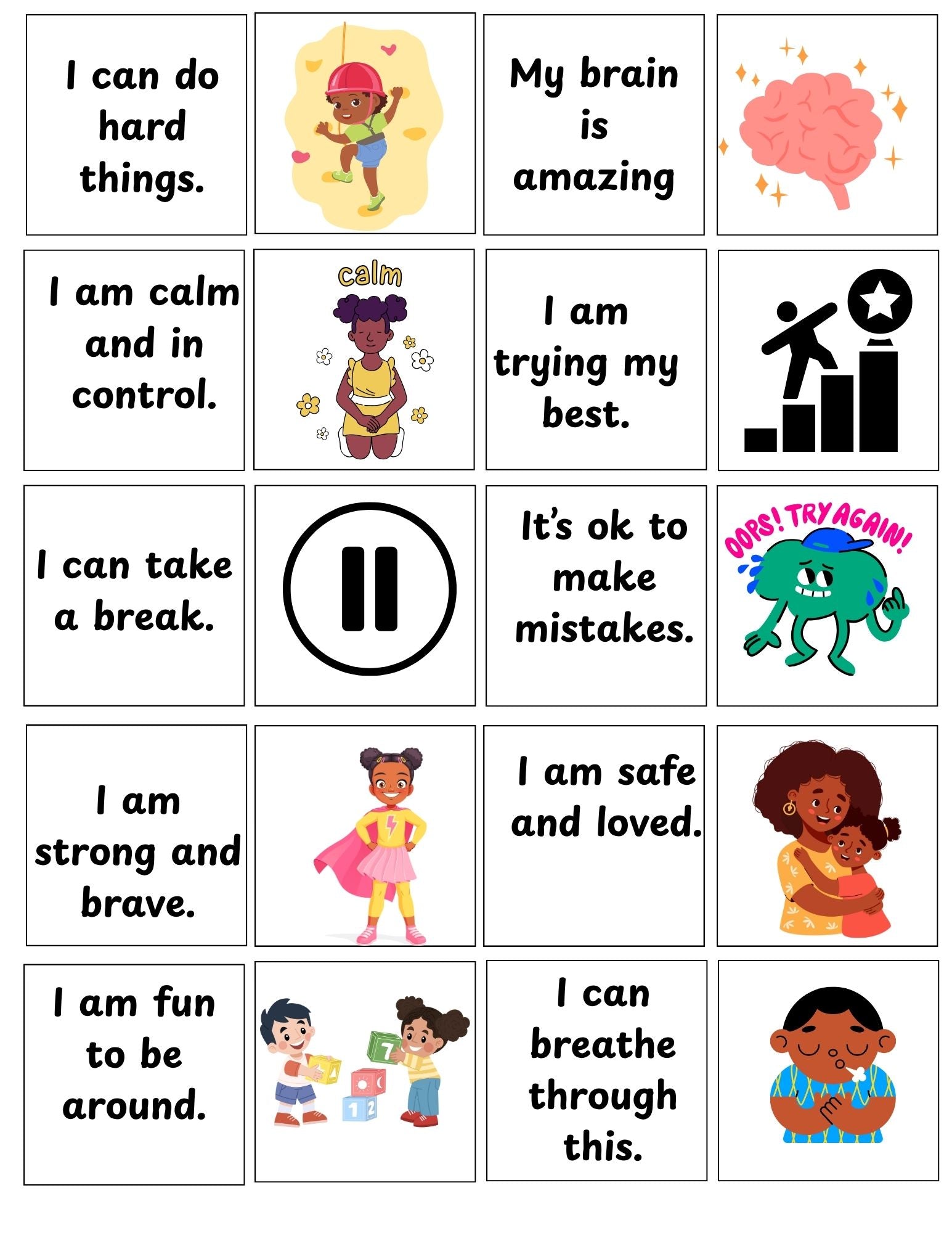 Kids name the strategy or affirmation out loud as they find each pair — encouraging focus, self-awareness, and social-emotional growth.
